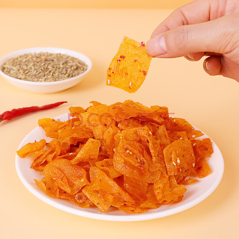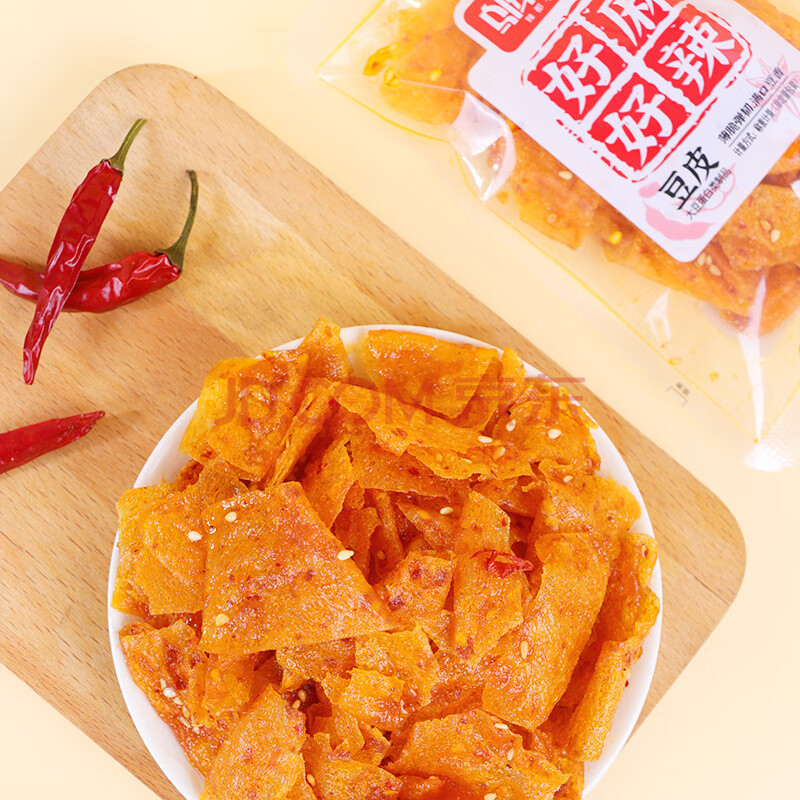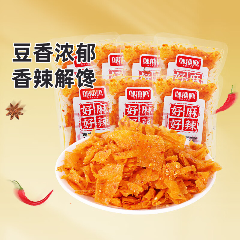 商品相册:邬辣妈薄脆豆皮(好麻好辣)豆制品辣条儿时童年零食 小包装零食220g第