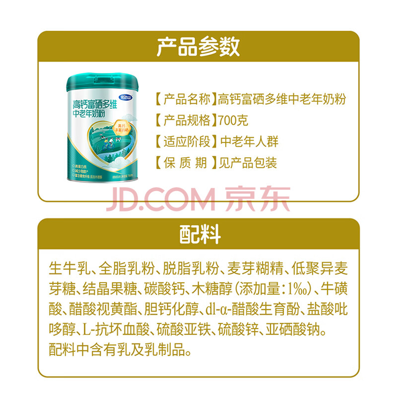 商品相册:完达山中老年奶粉礼盒装高钙高蛋白质富硒多维700g*2罐年货节送礼送长辈第