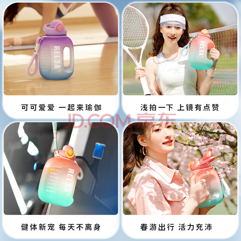 商品相册:物生物(RELEA)运动水杯吨杯吨桶大容量Tritan塑料健身水壶男女学生吸管杯子礼物第