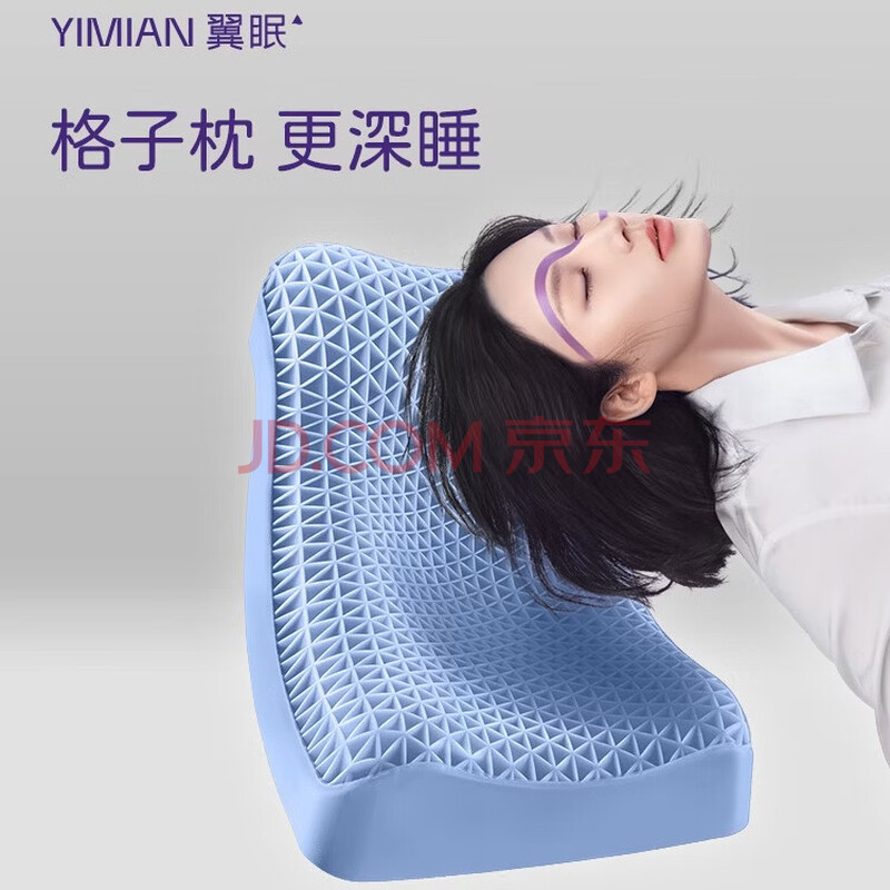 商品相册:翼眠非乳胶枕头成人深睡格子枕释压舒睡贴合头强透气可水洗经典枕蓝色第