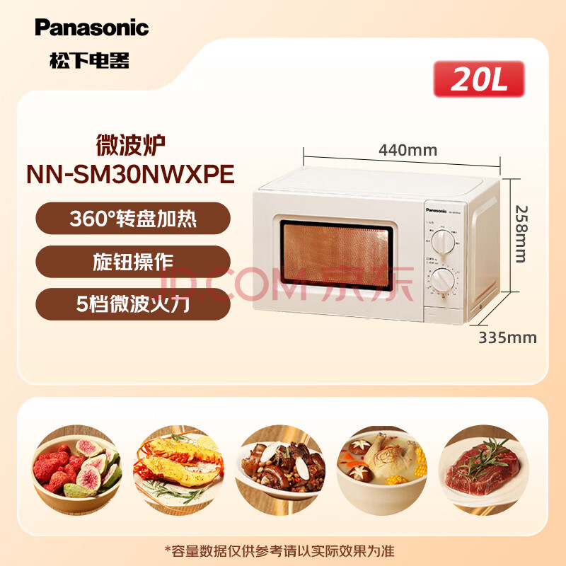 商品相册:松下(Panasonic)360°转盘式加热五档火力精准控温旋钮操作化繁为简20升家用微波炉NN-SM30NW第