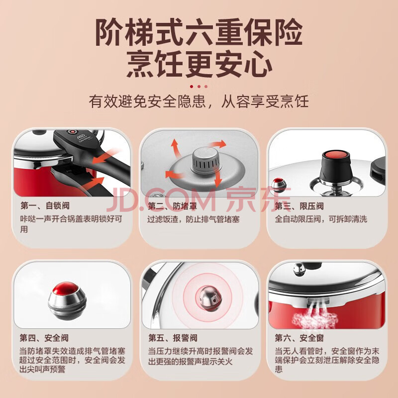 商品相册:爱仕达 ASD 高压锅304不锈钢六保险4.0L压力锅燃气电磁炉通用YS20A7WG第