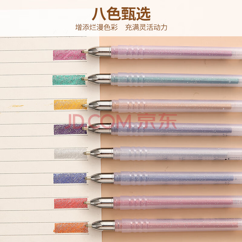 商品相册:晨光(M&G)文具1.0mm闪光彩色中性笔 子弹头签字笔 多色手账笔水笔 8支/盒GP1311第