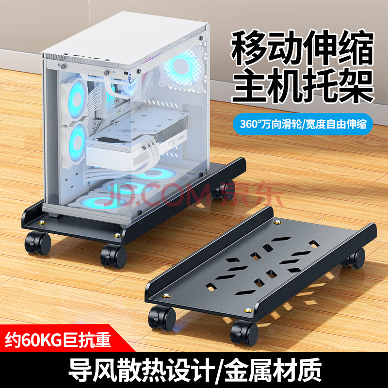 商品相册:连拓 台式电脑主机箱托架 可移动主机箱支架底座机箱托盘 万向滑轮锁轮刹车 尺寸可调金属材质安装简单第