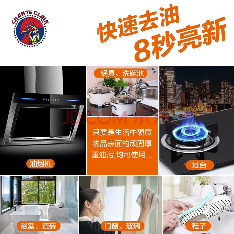 商品相册:大公鸡管家 多功能油污净3瓶装 (薰衣草+柠檬+马赛香) 强力油烟机灶台清洁剂第