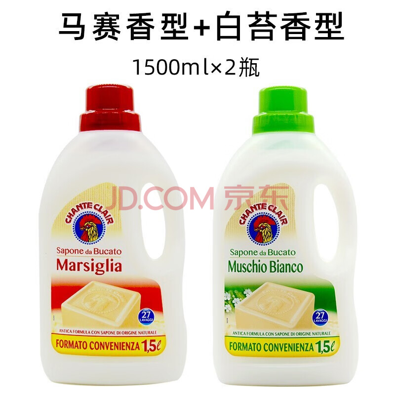 商品相册:大公鸡管家意大利进口衣物清洁皂液持久留香洗涤剂3L【2瓶】马赛香+白苔香第