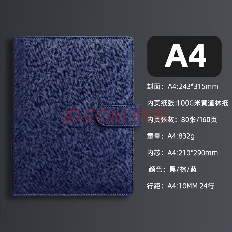 商品相册:嘉然恒A4大号活页本商务办公笔记本本子高颜值简约加厚活页记事本可拆卸替换活页内芯会议记录本可定制深蓝色第