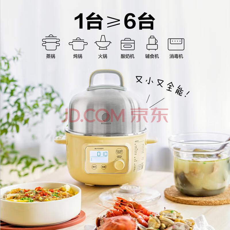 商品相册:北鼎(Buydeem)电煮锅电蒸锅家用迷你小蒸锅电火锅全自动预约保温蒸汽锅家用多用途锅蒸煮炖锅 【G37 浅杉绿】第