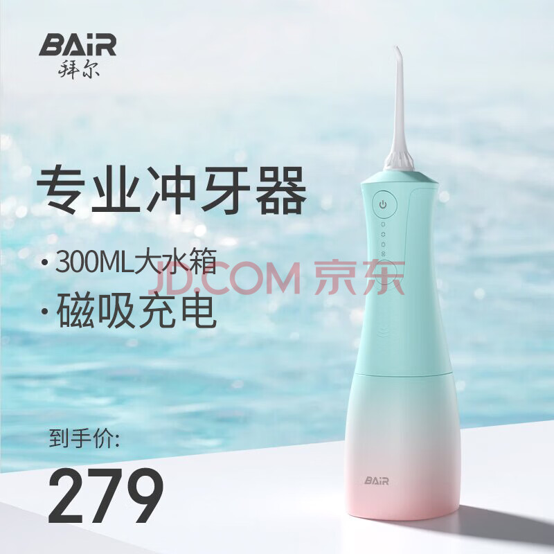 商品相册:拜尔专业冲牙器 手持式水牙线家用电动超声波洁牙去除正畸专用牙齿清洁洗牙神器 M401海洋蓝第