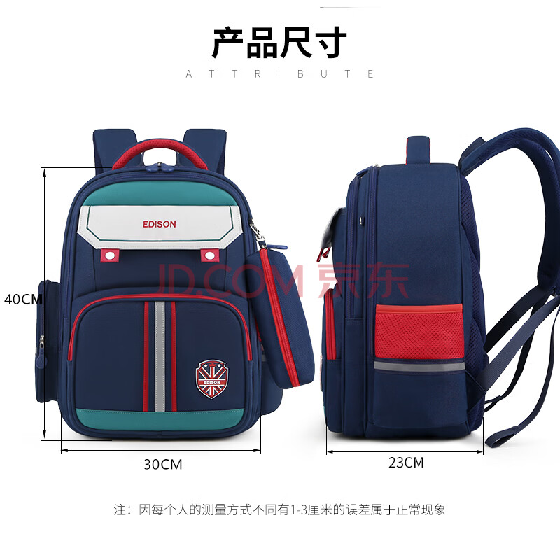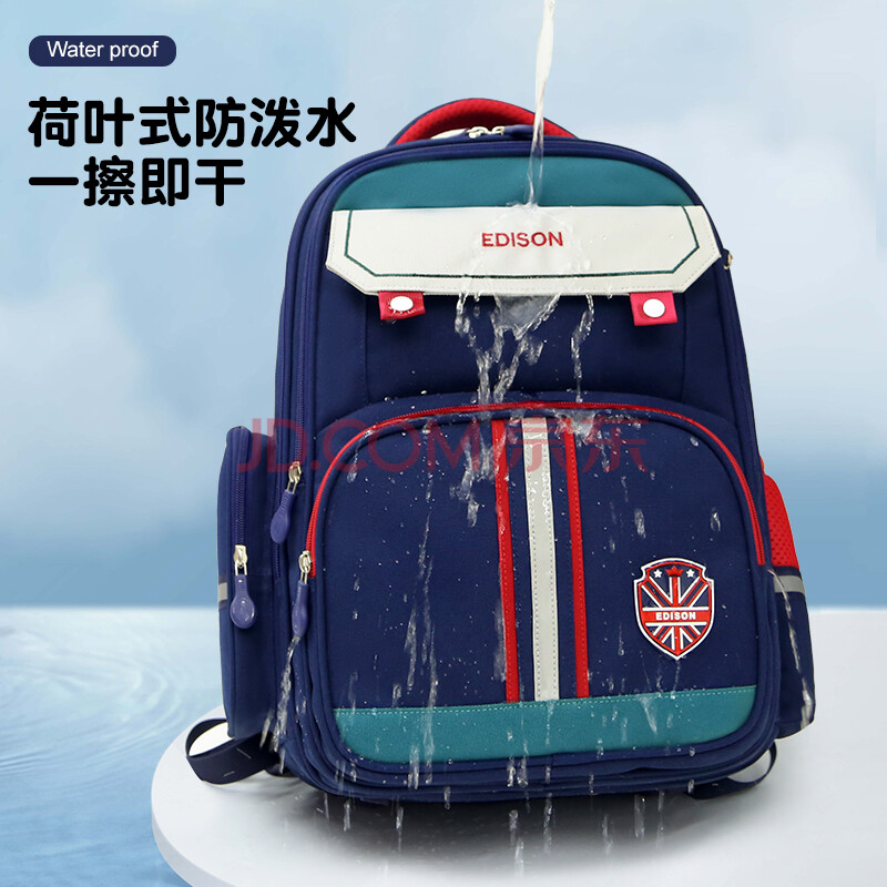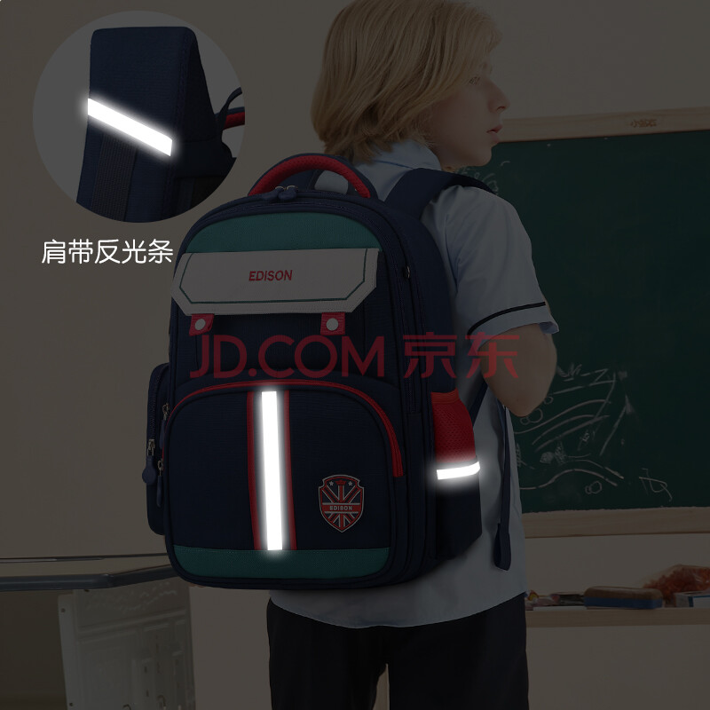 商品相册:Edison爱迪生小学生书包减负护脊反光大容量防泼水防下坠儿童背包2312-1第