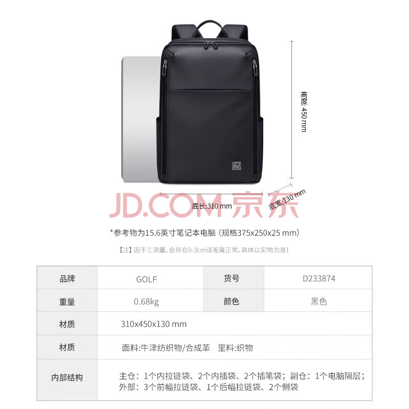 商品相册:高尔夫(GOLF)双肩包男士背包男15.6吋电脑学生书包多隔层轻便商务休闲旅行背包第