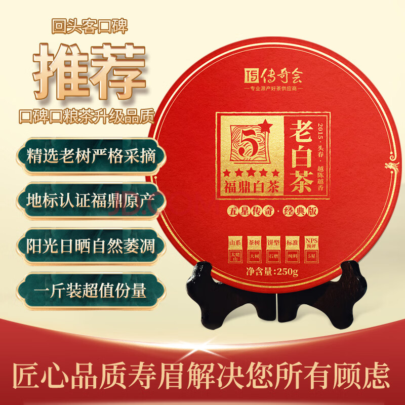 商品相册:传奇会茶叶福鼎白茶老寿眉8年陈老白茶茶饼礼盒装500g自己喝送礼第