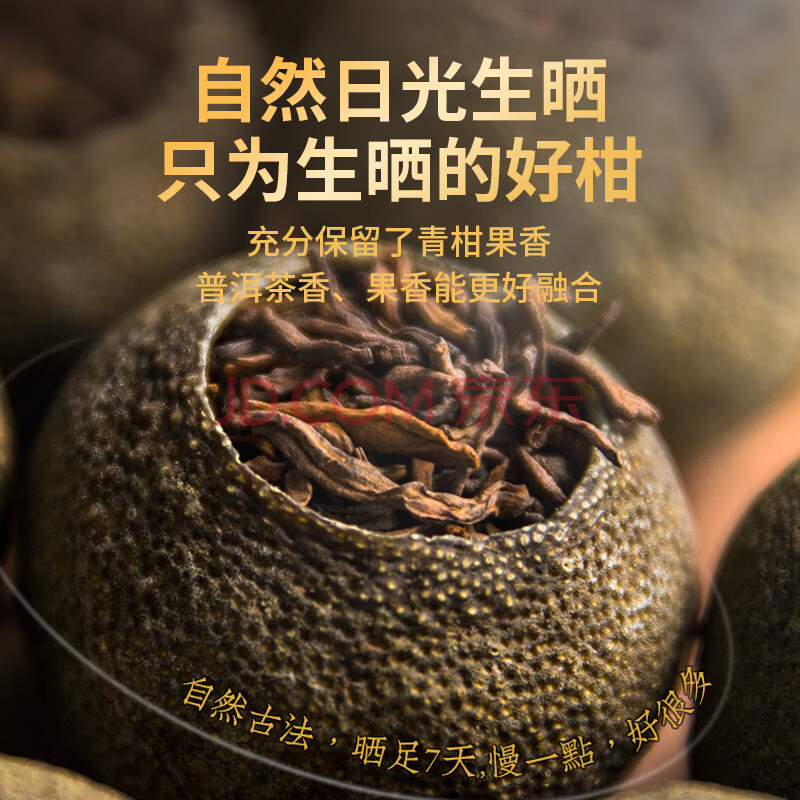 商品相册:传奇会茶叶 普洱茶熟茶 新会小青柑生晒陈皮普洱柑普茶罐装250g礼盒装第