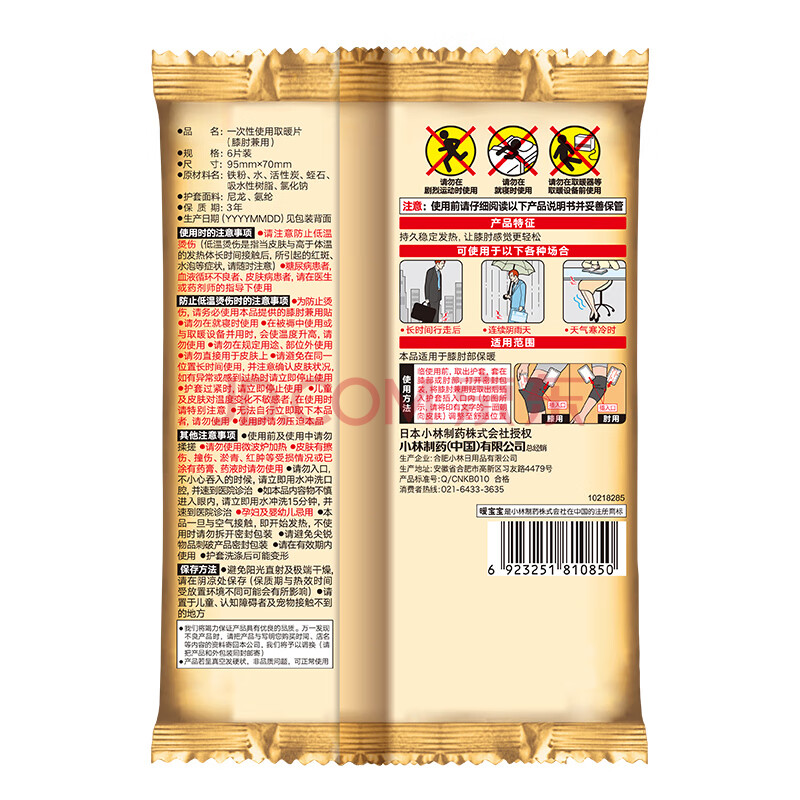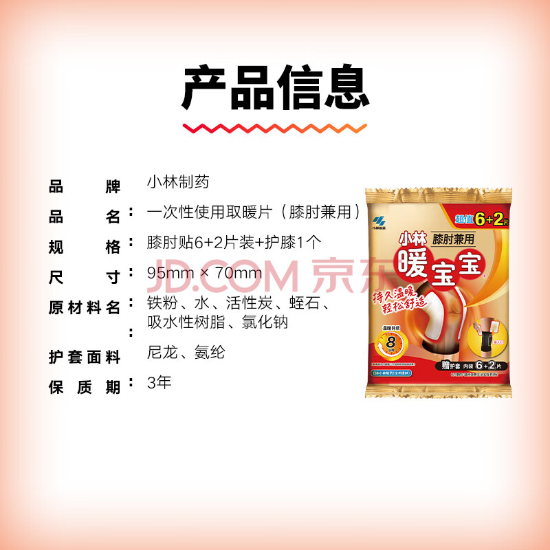 商品相册:暖宝宝小林制药暖贴膝盖关节膝肘兼用暖身贴防寒降温保暖贴自发热贴8片第1张/共7