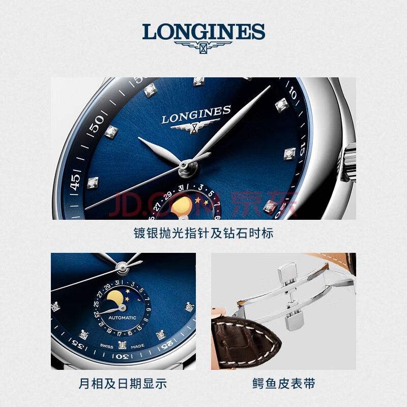 商品相册:浪琴(LONGINES)瑞士手表 名匠系列月相腕表 男士皮带机械表 L29094970第
