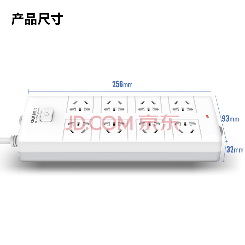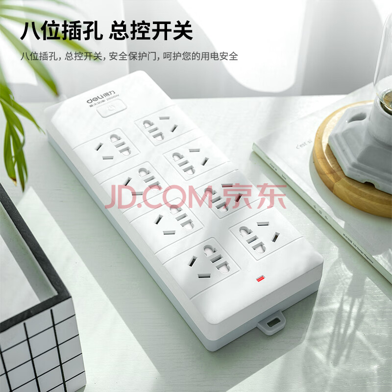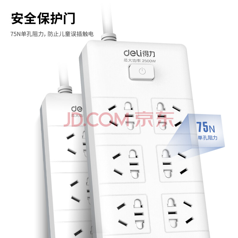 商品相册:得力(deli)新国标安全插座/插排/插线板/接线板/排插/拖线板 总控开关 8组合孔3米 儿童保护门 18262第