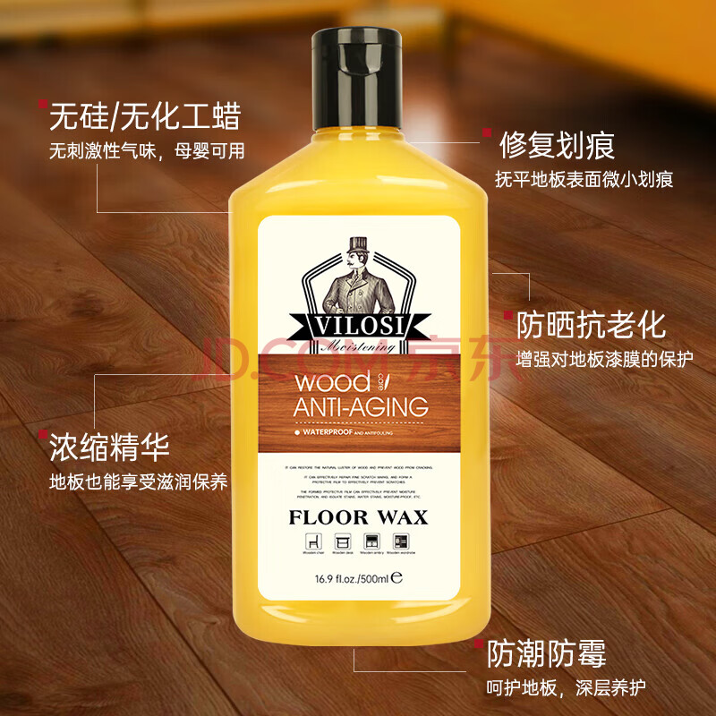 商品相册:vilosi卫洛仕木地板保养蜡地板清洁剂500ml实木复合地板滋养上光精油第