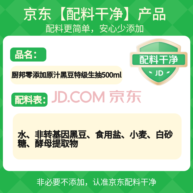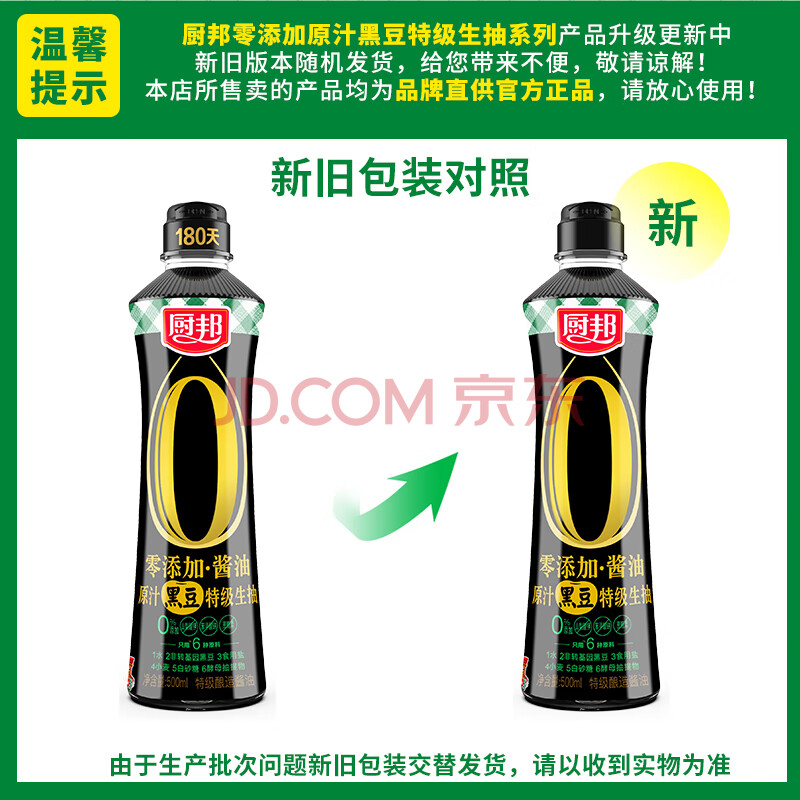商品相册:厨邦酱油 原汁生抽 黑豆特级酱油500ml【配料干净】 酿造酱油调味品第