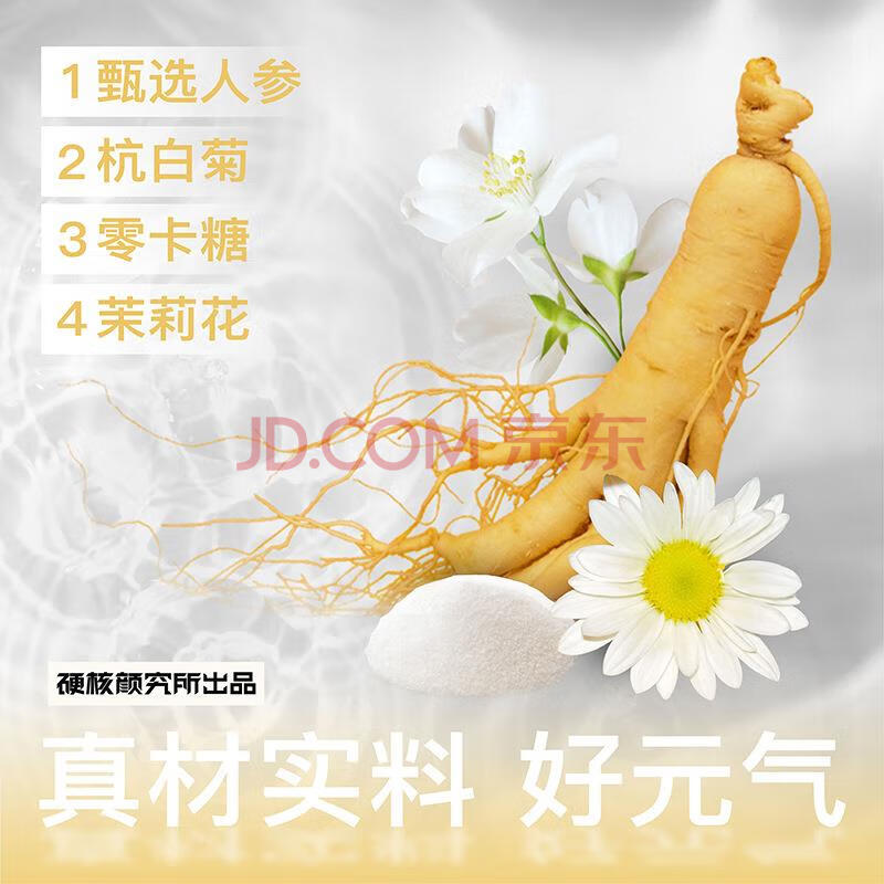 商品相册:硬核颜究所人参茶整箱一整根人参水0糖0脂饮料 淡雅茉莉480mL*6瓶第