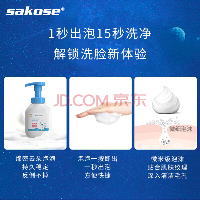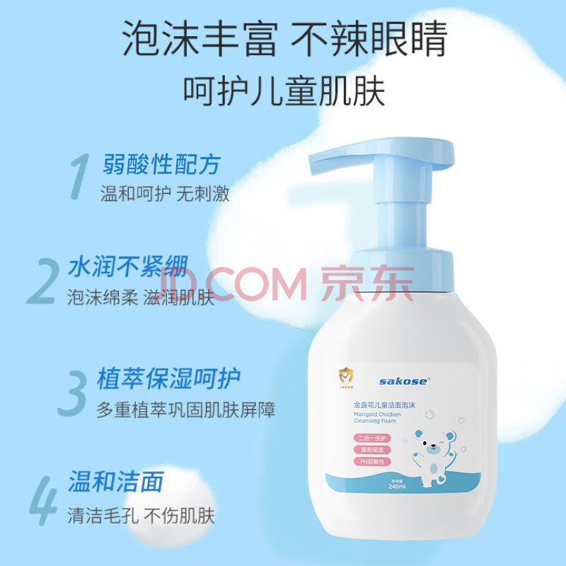 商品相册:sakose凡士林金盏花儿童洁面泡沫洗面奶240ml/瓶男女孩3-6-12岁小学生用第