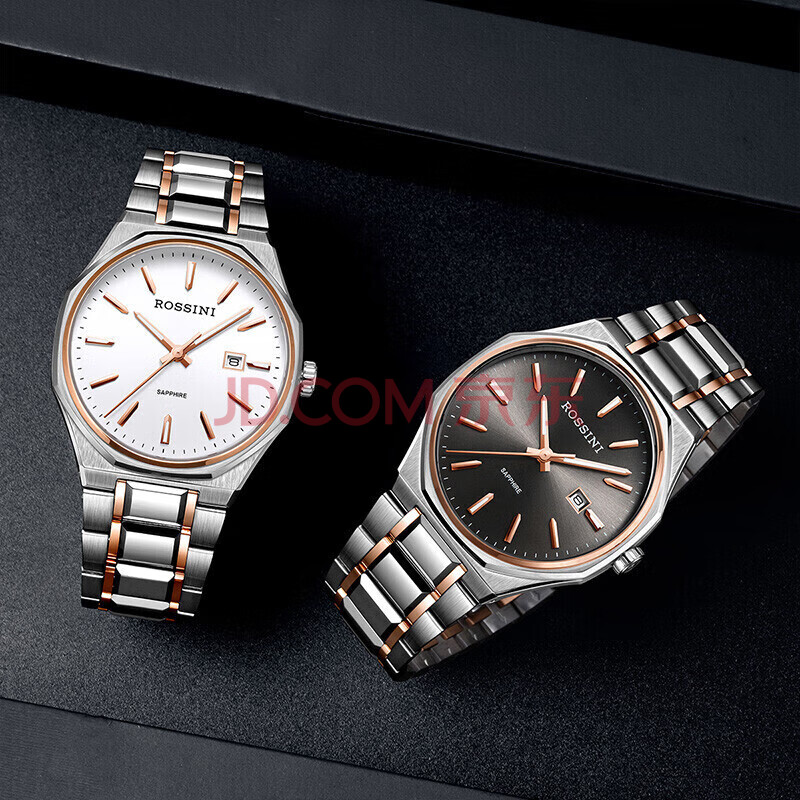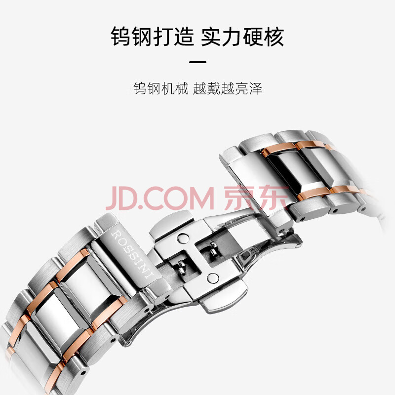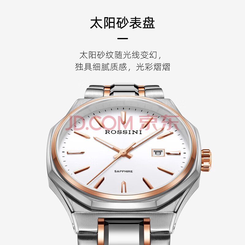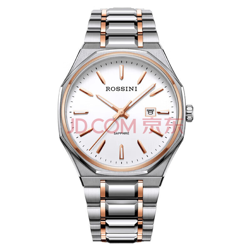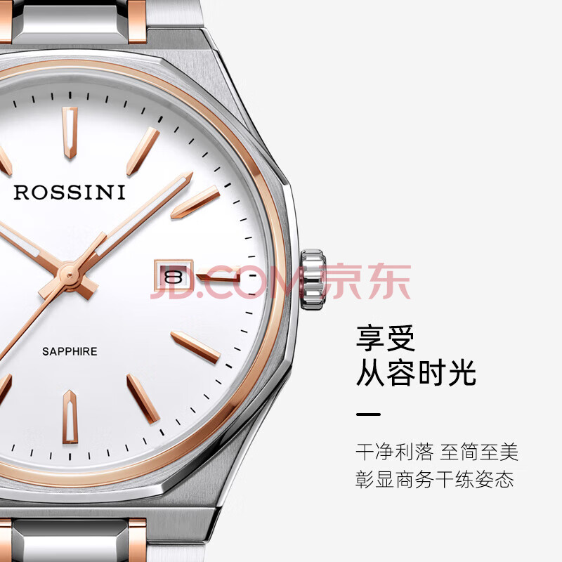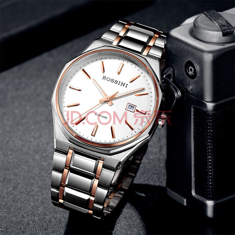 商品相册:罗西尼(ROSSINI)手表男 生日礼物商务钨钢日历石英表白盘间钨钢带50103第
