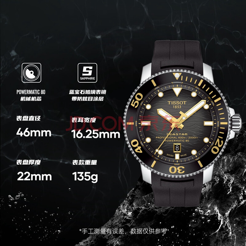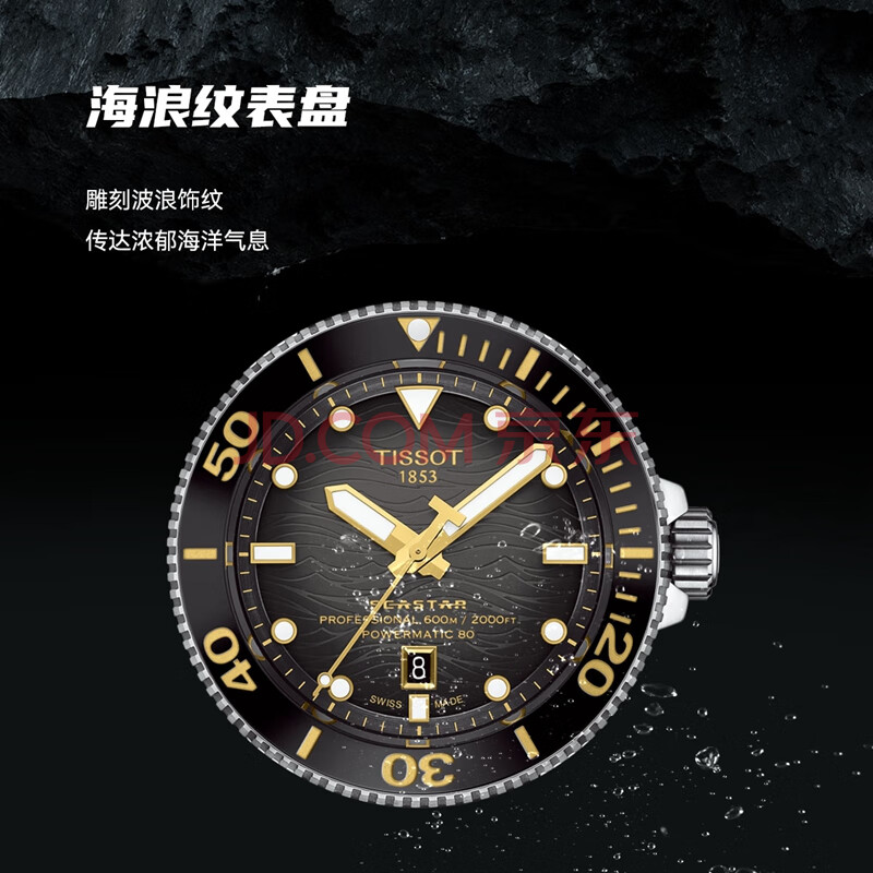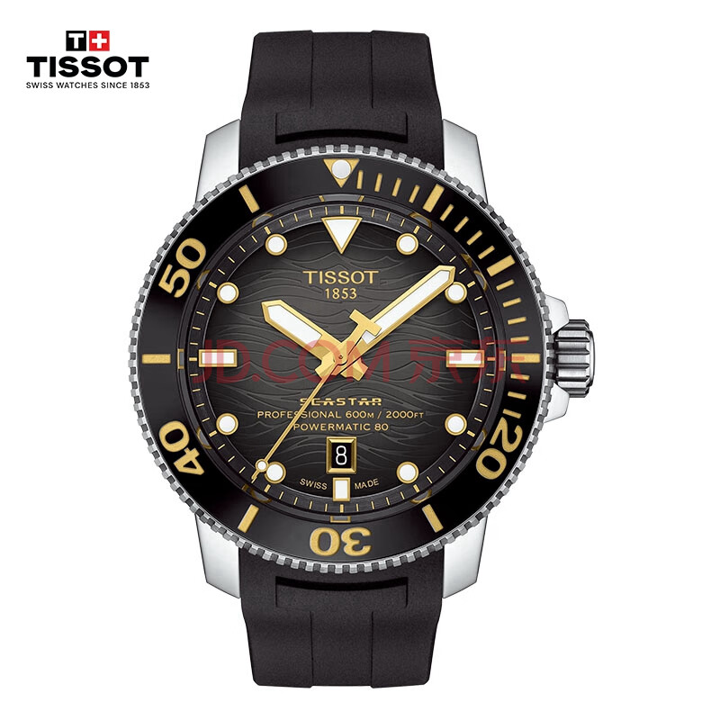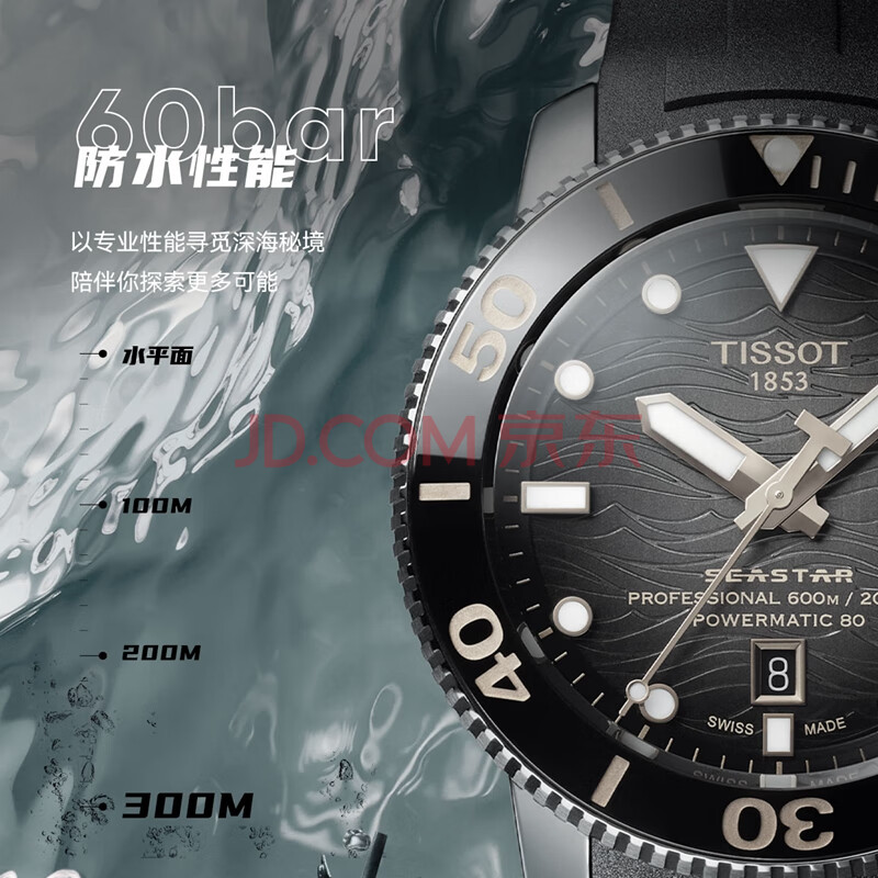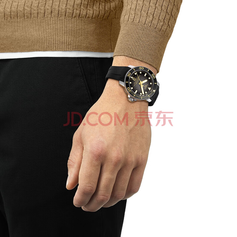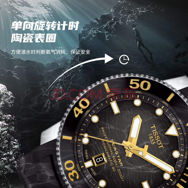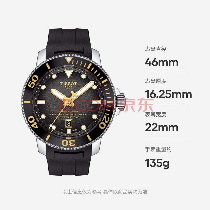 商品相册:天梭手表 海星系列男表 瑞士自动机械男士橡胶带腕表潜水表生日礼物第