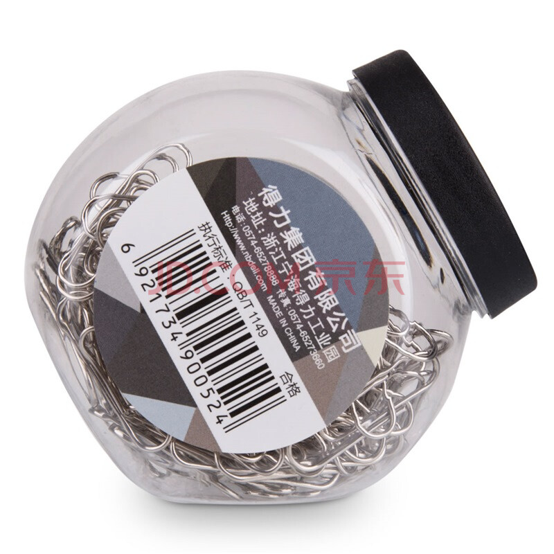 商品相册:得力(deli)(deli)29mm镀镍回形针 3号金属防锈曲别针 200只/桶 办公室文具用品 0052第