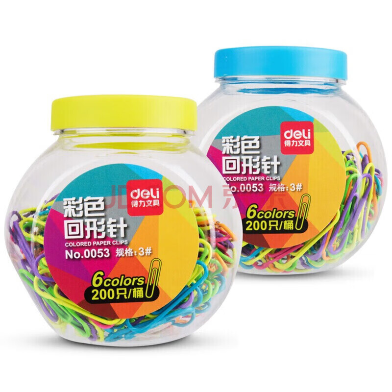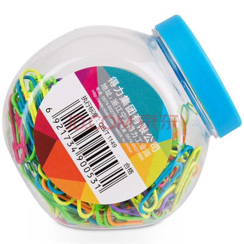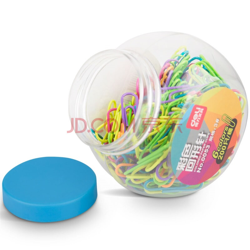 商品相册:得力(deli)(deli)3#镀镍时尚彩色防锈曲别针 办公用品家用多功能回形针 200枚/桶 0053第