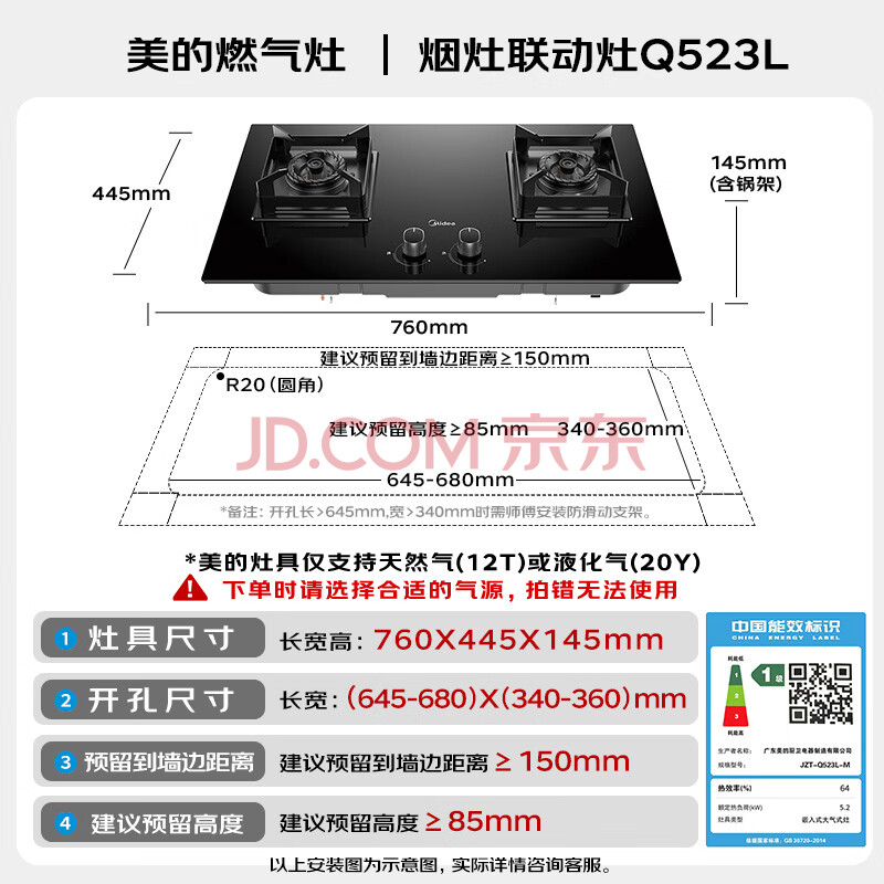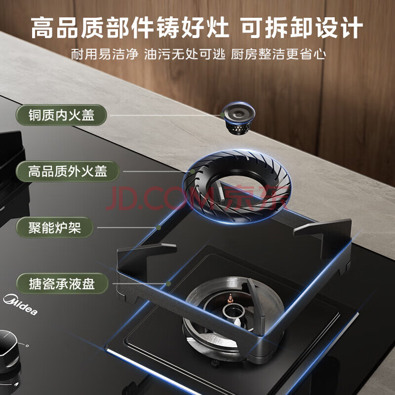 商品相册:美的(Midea)【天然气】燃气灶 大火力家用灶具 5.2kW猛火大火灶台嵌两用 JZT-Q523L-M 第