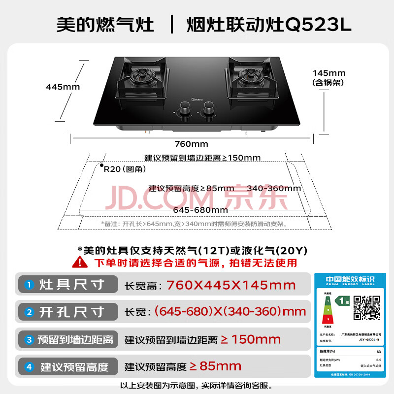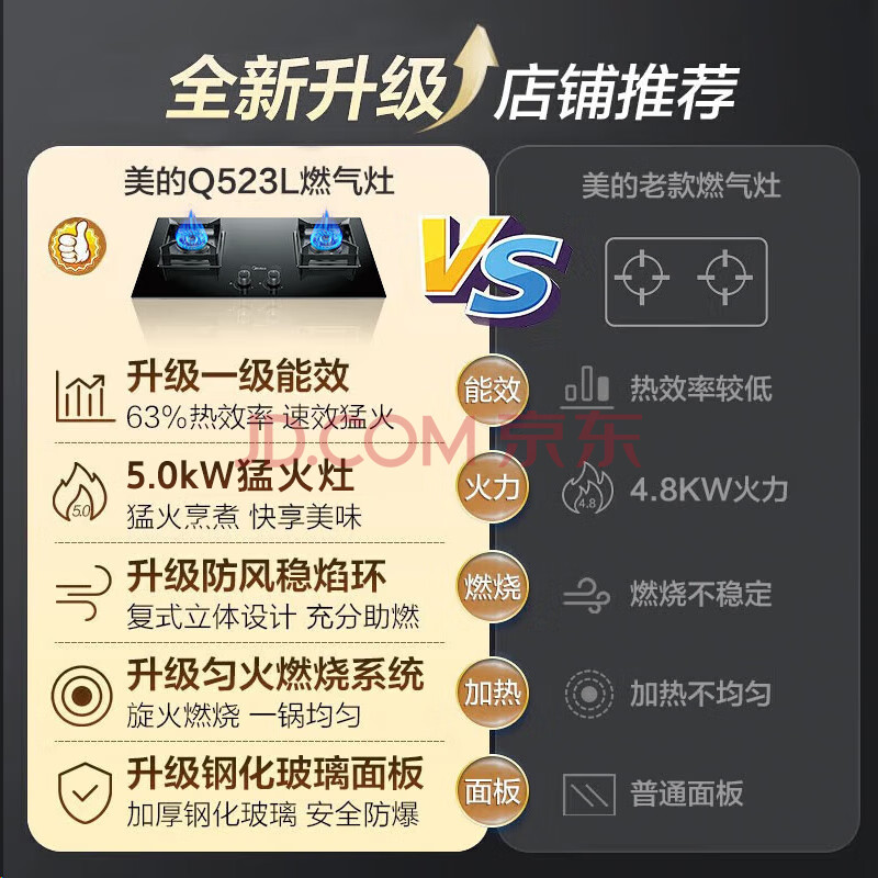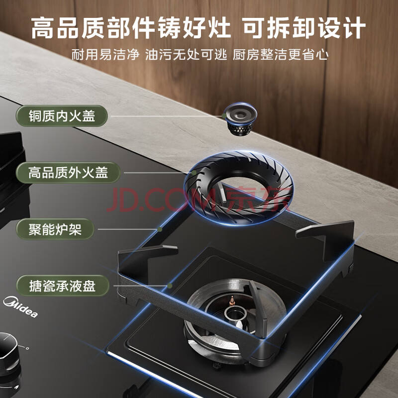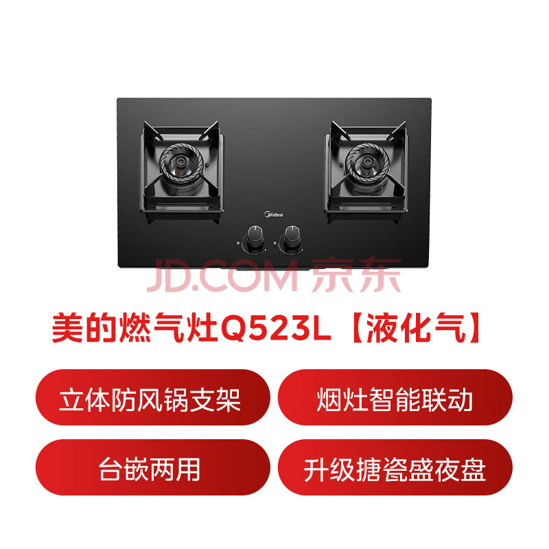 商品相册:美的(Midea)【液化气/煤气罐】燃气灶 大火力家用灶具 5.0kW猛火大火灶台嵌两用 JZY-Q523L-M第