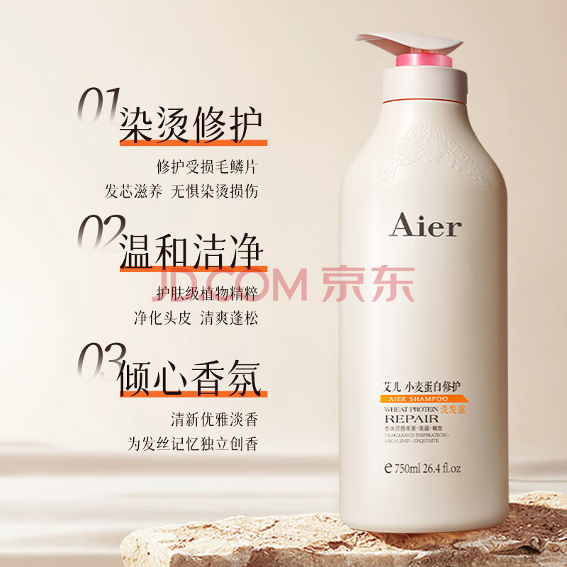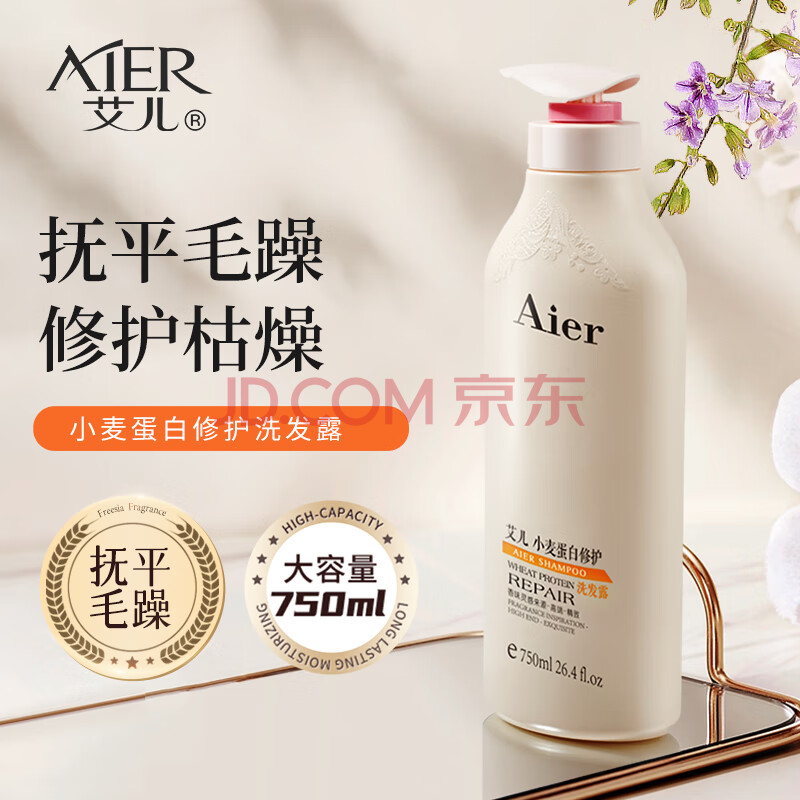 商品相册:艾儿(AIER)洗发水小麦蛋白修护洗发露750ml 丰盈丝滑 柔滑再现第