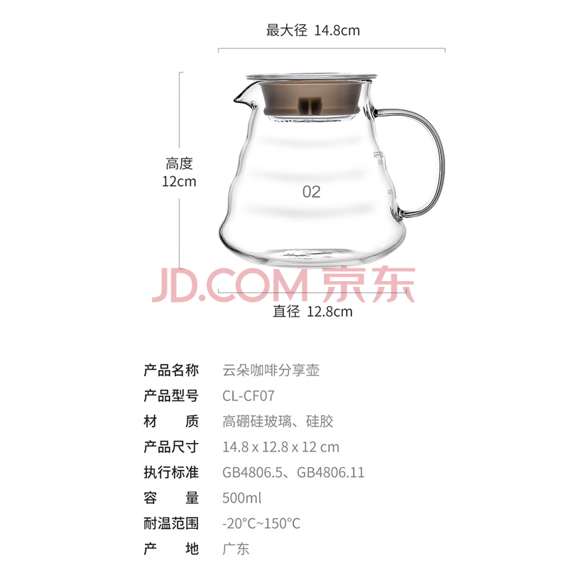商品相册:CLITON云朵咖啡分享壶 家用耐热玻璃滴漏壶咖啡云朵分享壶500ml CL-CF07第