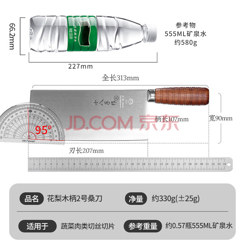 商品相册:十八子作专业中式厨师刀具 辊锻工艺花梨木柄菜刀2号桑刀S318-S2第