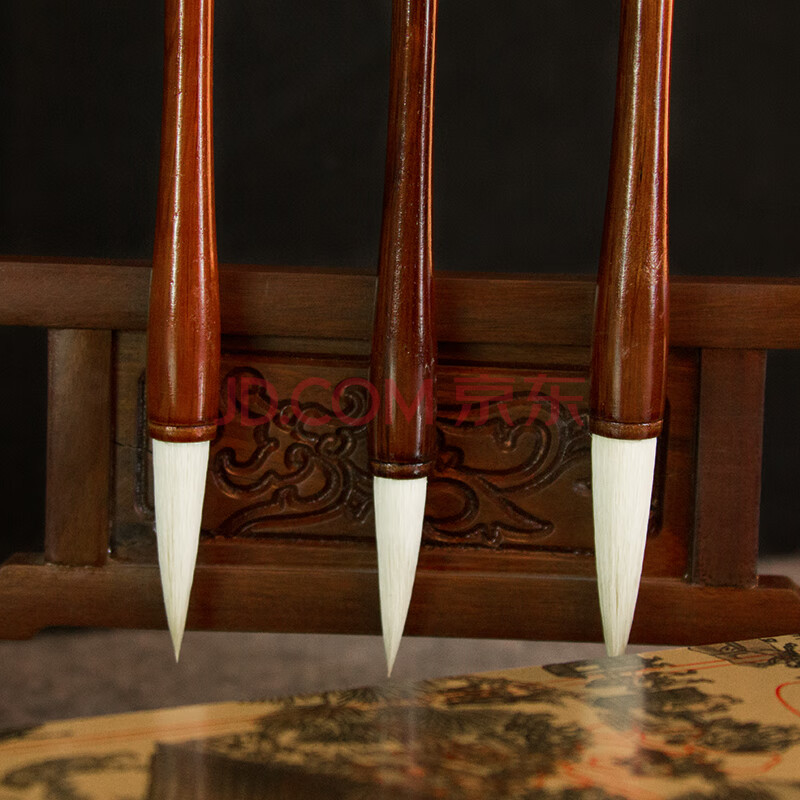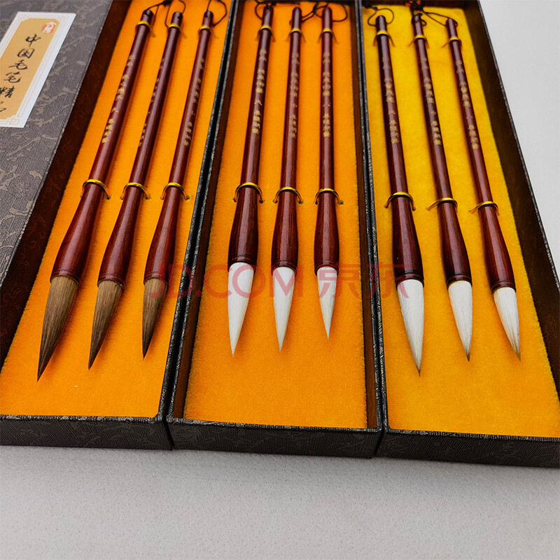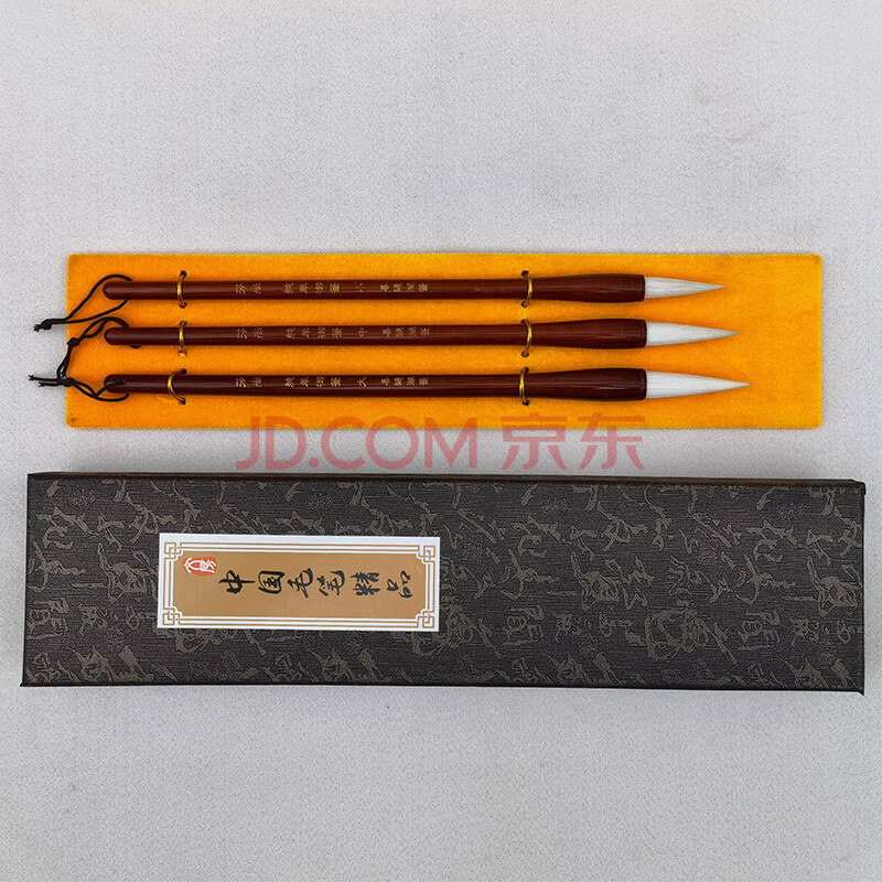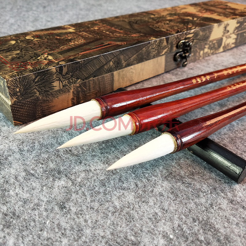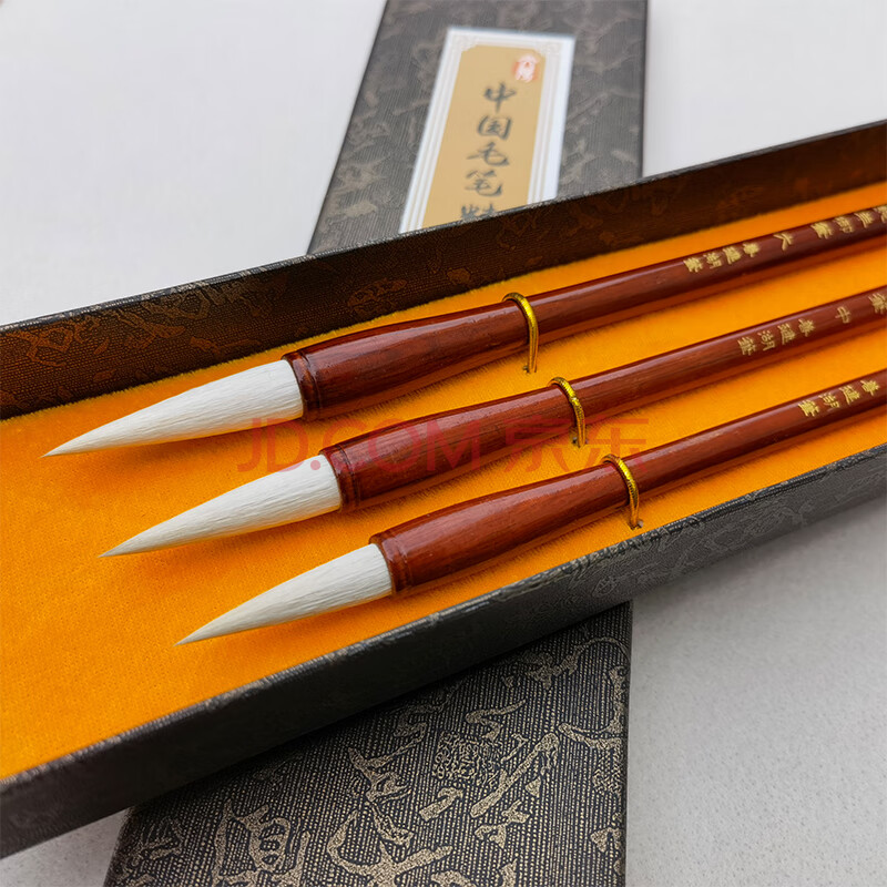 商品相册:芬尚 清明上河图湖笔套装 羊毫毛笔大中小3支礼盒装 中秋好礼 书法国画作品用-纯羊御笔第