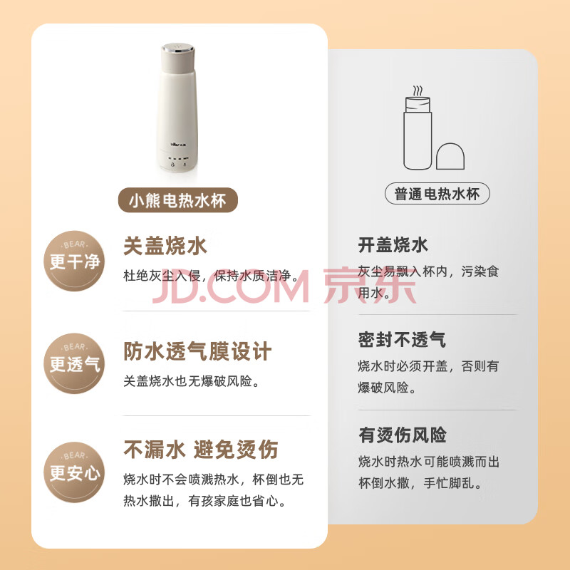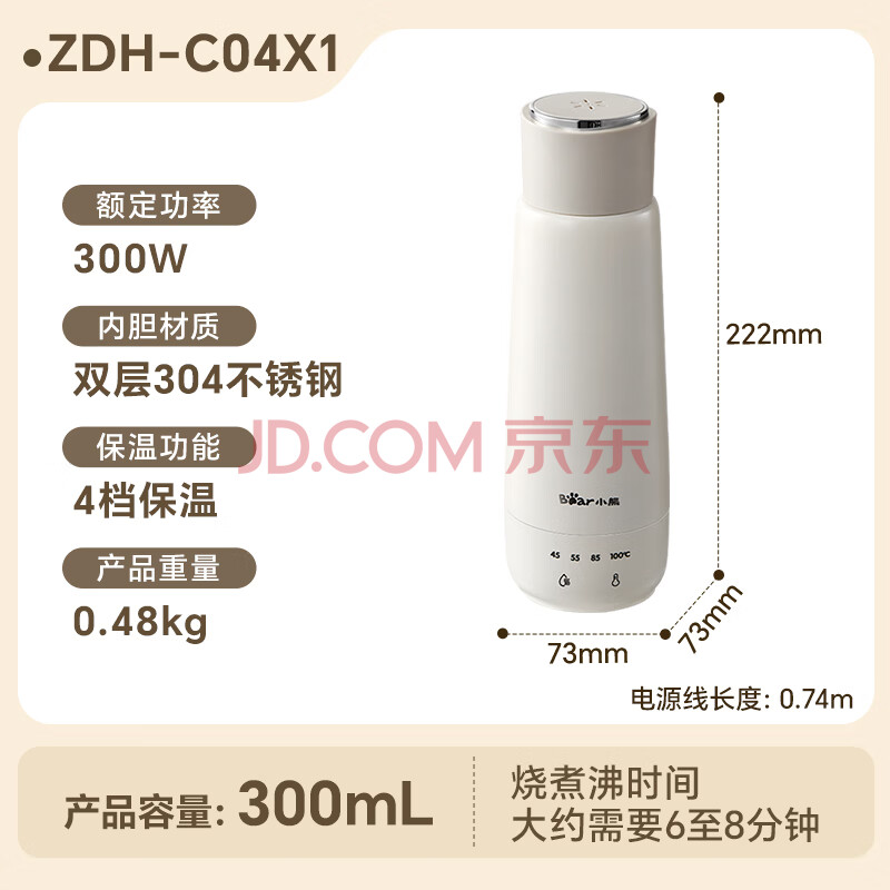 商品相册:小熊(Bear)电热水杯 便携式烧水壶 升级双层不锈钢 0.3L迷你保温杯学生宿舍电热水壶 ZDH-C04X1 礼物送礼第