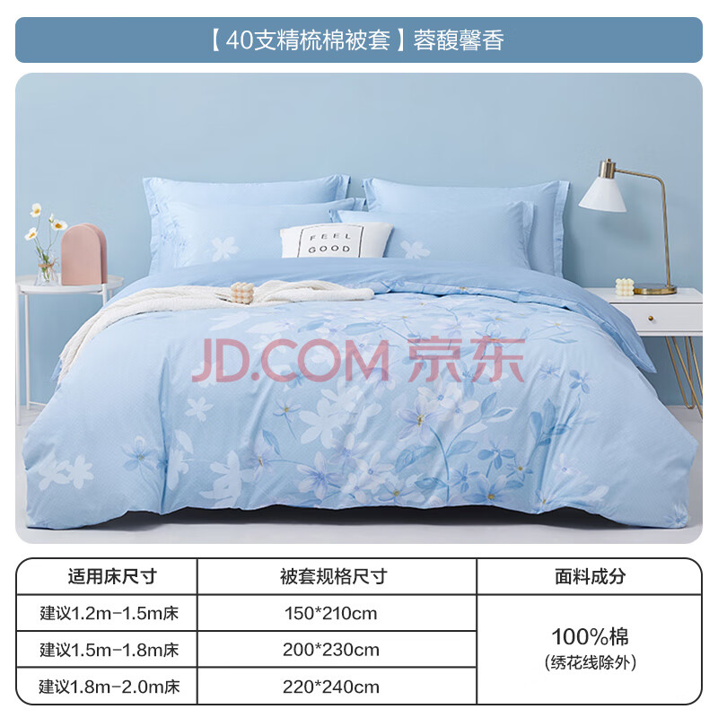 商品相册:博洋家纺高支全棉被套单件纯棉印花被罩蓉馥馨香被套150*210cm家居馆第1张/共3