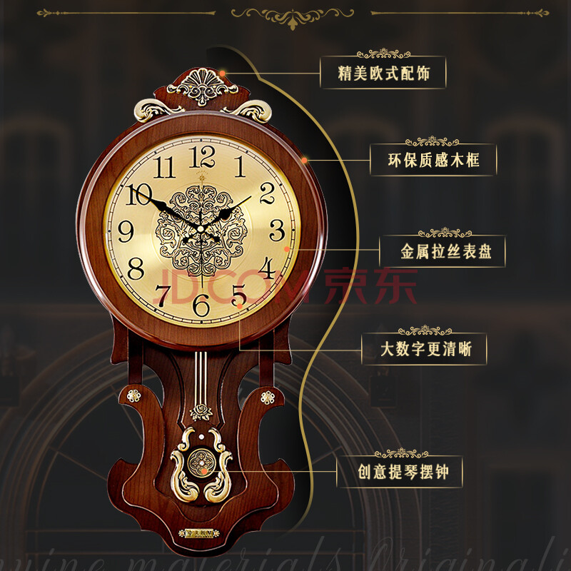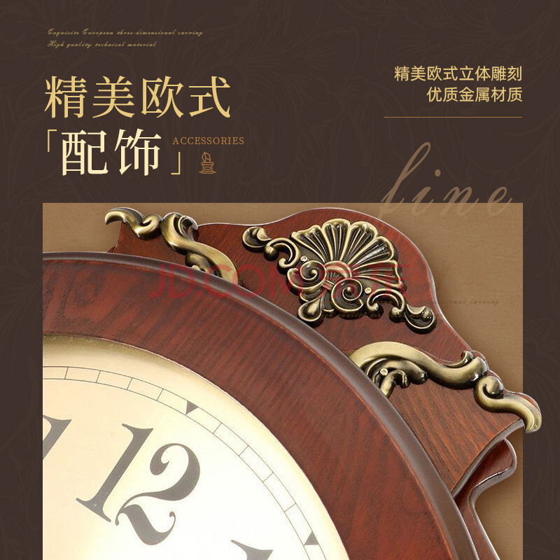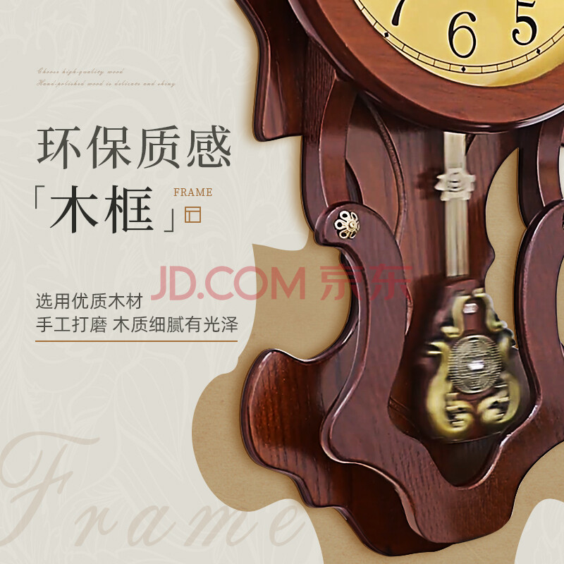 商品相册:北极星(POLARIS)挂钟客厅自动对时石英钟表复古智能时钟卧室挂表雕花摆钟62cm第