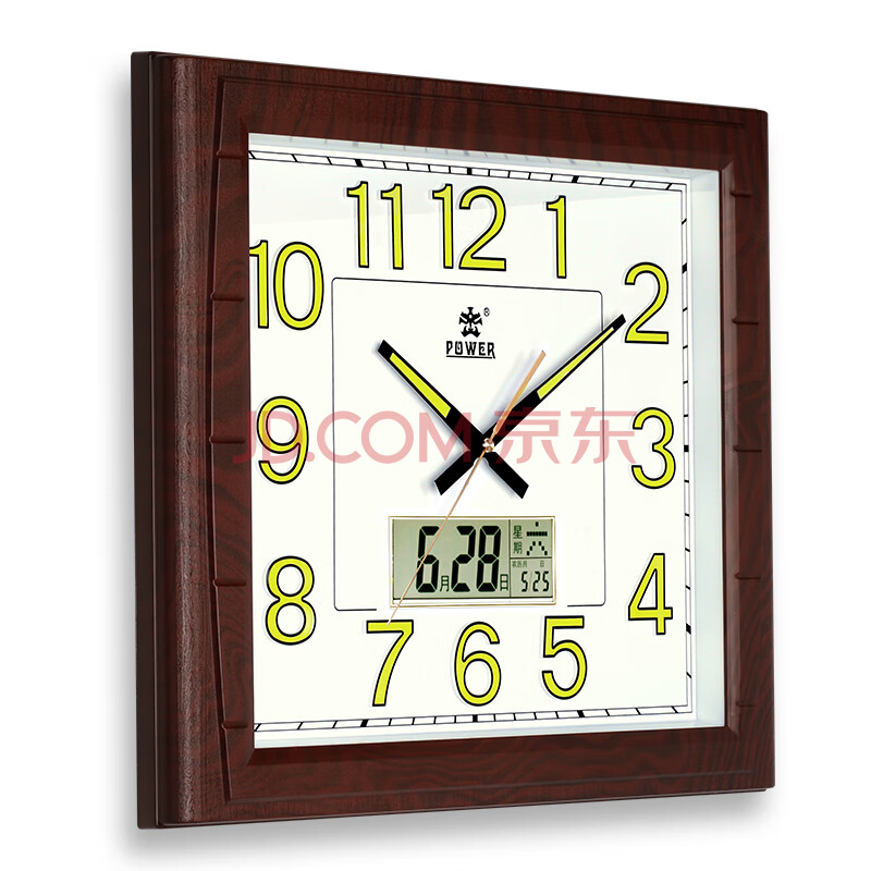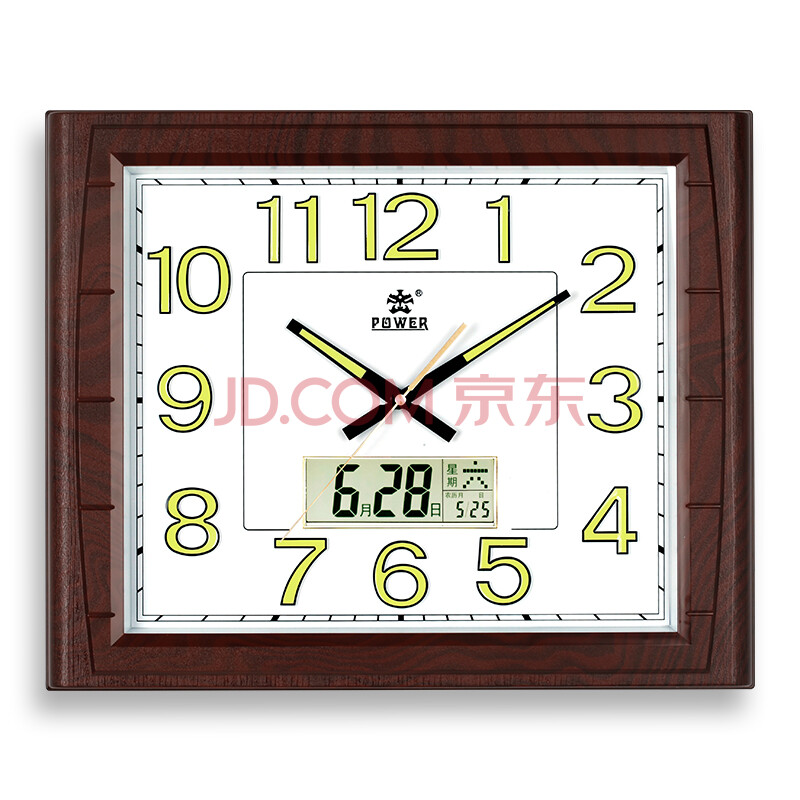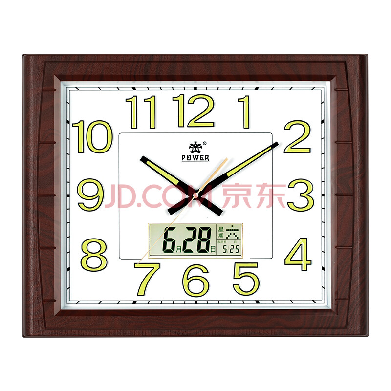 商品相册:POWER霸王挂钟 客厅家用新中式挂墙 夜光日历石英钟 长49cm木纹色0515第