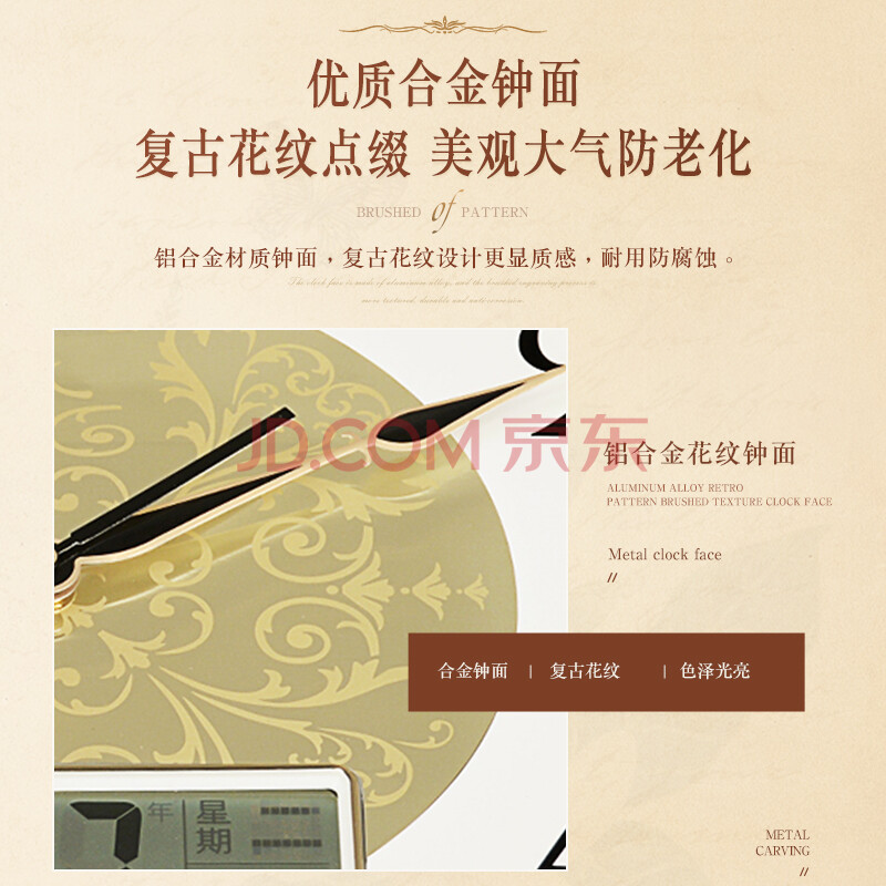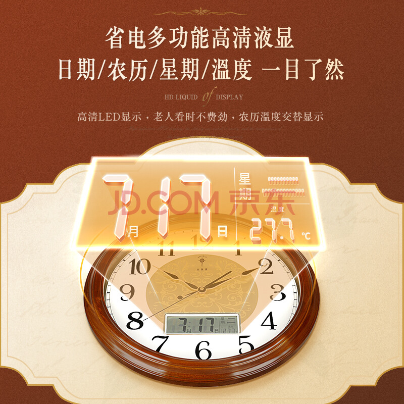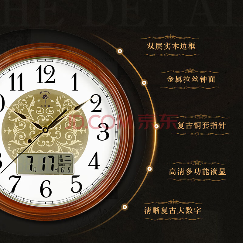 商品相册:北极星(POLARIS)挂钟实木钟客厅家用复古挂表轻奢卧室时钟 9063智能机芯第