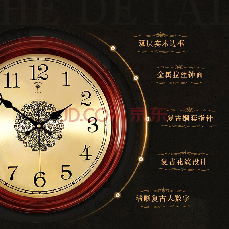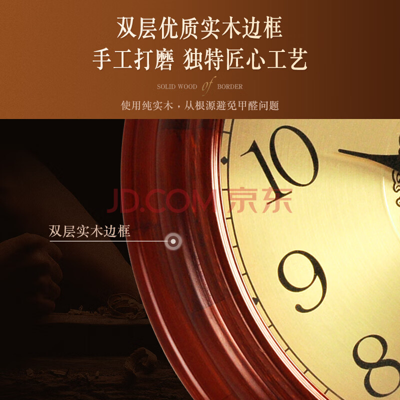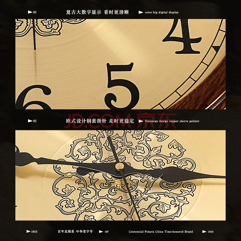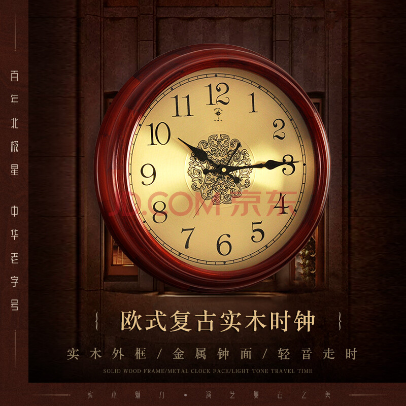 商品相册:北极星(POLARIS)挂钟实木钟客厅家用复古挂表轻奢卧室时钟金属盘39cm第