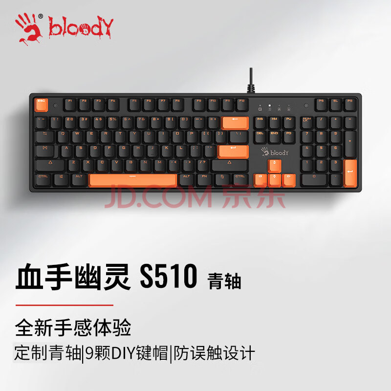商品相册:双飞燕(A4TECH)S510 104键 机械键盘 有线键盘游戏键盘机械键盘游戏电竞专用青轴键盘 血手幽灵 青轴 黑橙 有线第