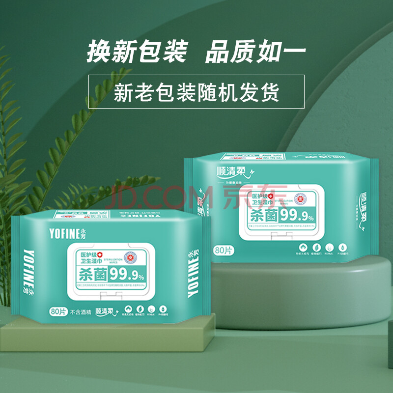 商品相册:顺清柔湿巾80片*4包 永芳医护级双盖防挥发洁肤清洁湿纸巾无香整箱装第