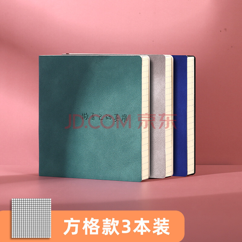 商品相册:法拉蒙faramon 3本装加厚方型羊巴本口袋本小笔记本便携随身携带记事本文具日记本 (绿蓝灰)方格款第