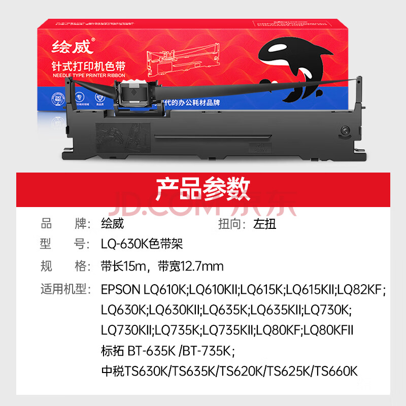 商品相册:绘威LQ630K色带适用爱普生EPSON LQ615KII 630KII 730KII 635KII 735KII 610K 80KF针式打印机第