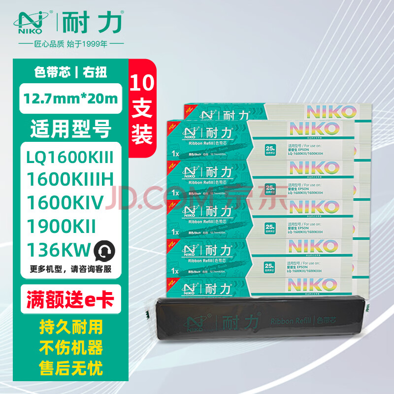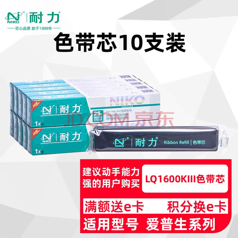 商品相册:耐力(NIKO)N LQ1600KIII 色带芯 10支装 适用爱普生LQ1600KIII+/KIIIH/KIV LQ1900KII/KII+/KIIH 2600K 2660K第