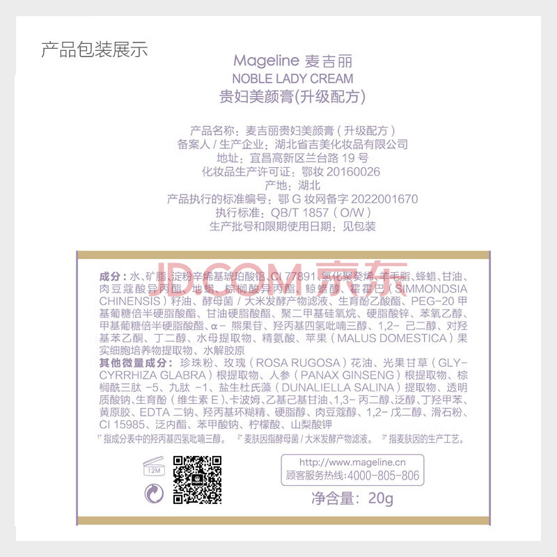 商品相册:麦吉丽(Mageline)贵妇膏20g全新升级二代抗皱紧致保湿提亮素颜面霜情人节礼物第