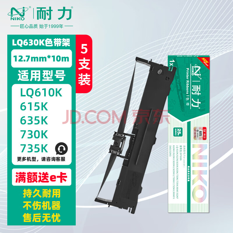 商品相册:耐力(NIKO)N LQ630K 色带架 5支装 适用爱普生LQ610K 615K 630KII 635KII 730K 735KII 80/82KF 打印机色带框第