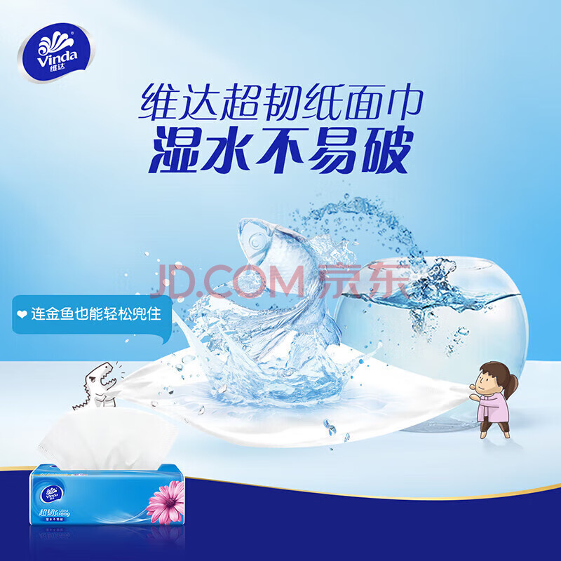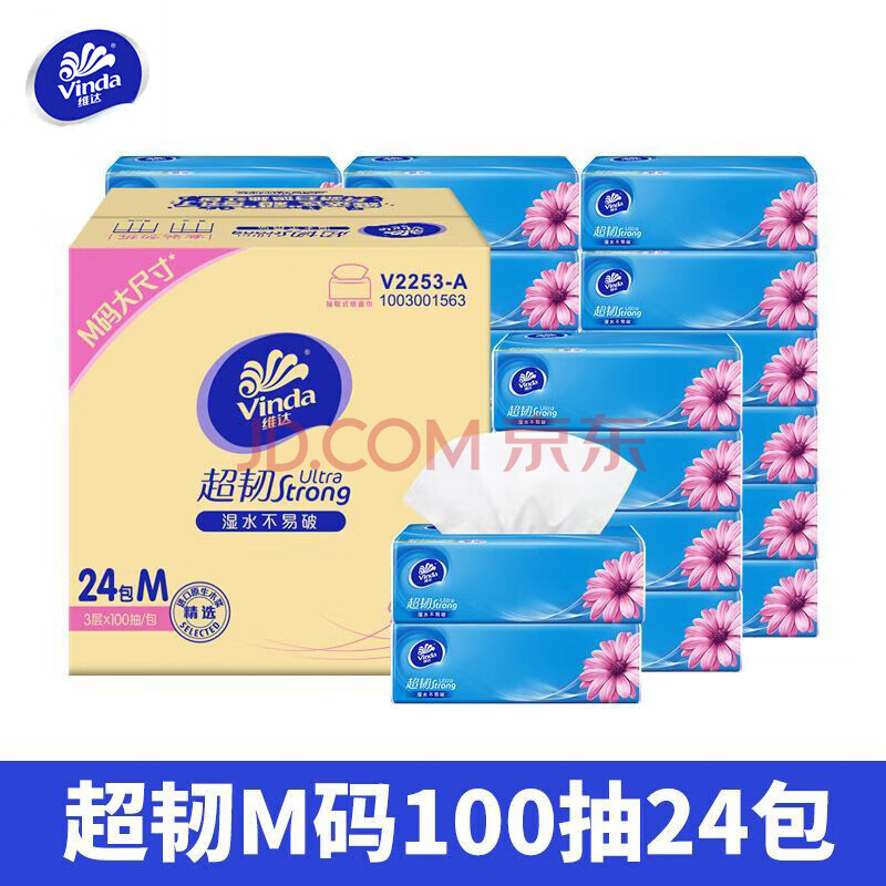 商品相册:维达 抽纸 超韧24包*3层100抽 M码整箱 湿水不易破卫生纸纸巾随机发第