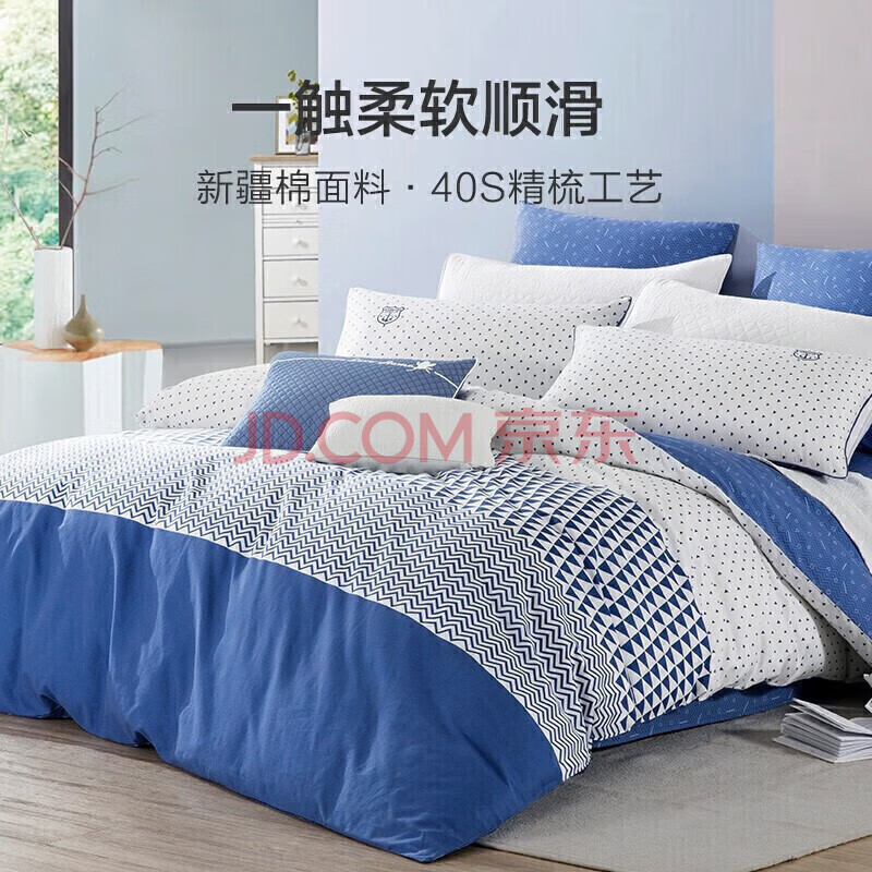 商品相册:LOVO罗莱家纺 全棉四件套100%纯棉斜纹床单被套枕套双人200*230cm第