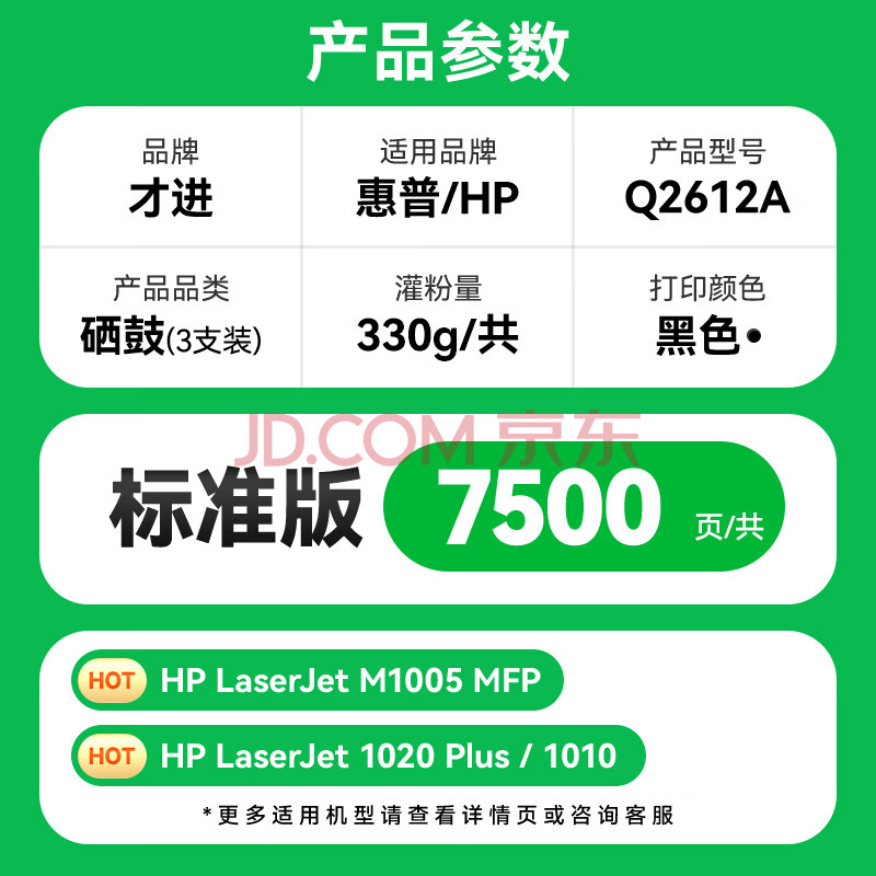 商品相册:才进适用惠普m1005硒鼓hp1020墨盒12a 1020plus激光打印机一体机1010 laserjet m1005mfp 1018 q2612a m1319f第